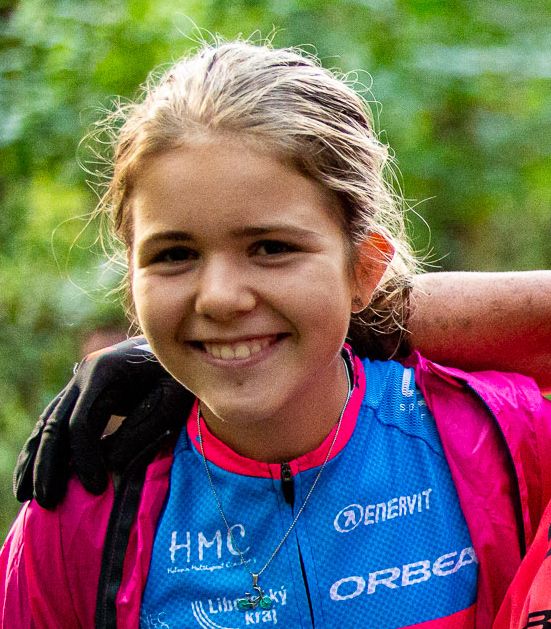 Už od svých 4 let závodím na horském kole. Baví mě na něm technika, ale co si musím ještě zlepšit je fyzička, proto jsem se přihlásila do CMC, aby mě posunuli ještě výš. Trénování je pro mě zábavnější když jezdíme společně, protože je u toho sranda a hecneme se, když někdo sjede těžký sjezd. Jako doplňkové sporty dělám horolezectví, florbal a běžecké lyžování. Jsem ráda, že jsem potkala Vláďu a Helču, jsou to fajn trenéři.